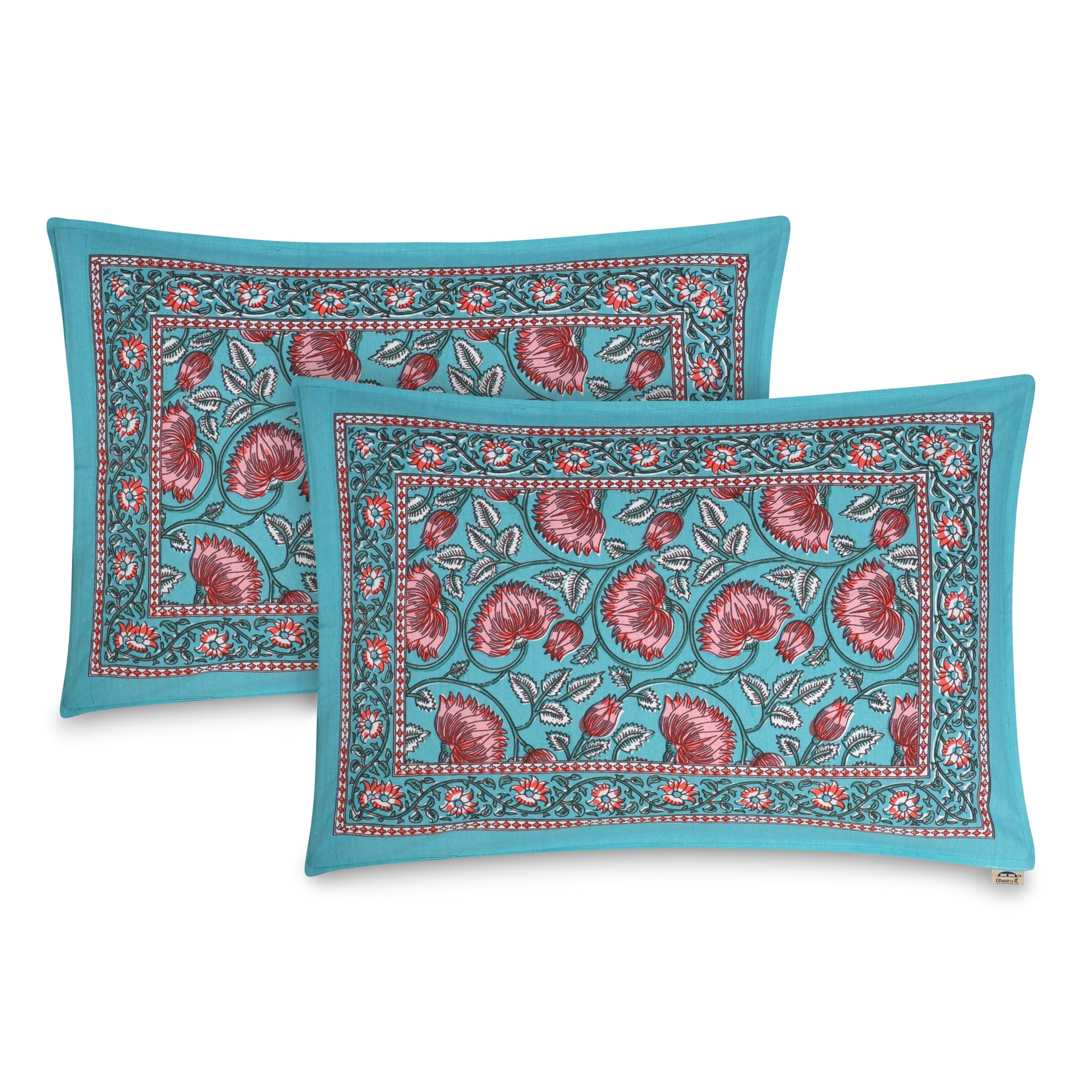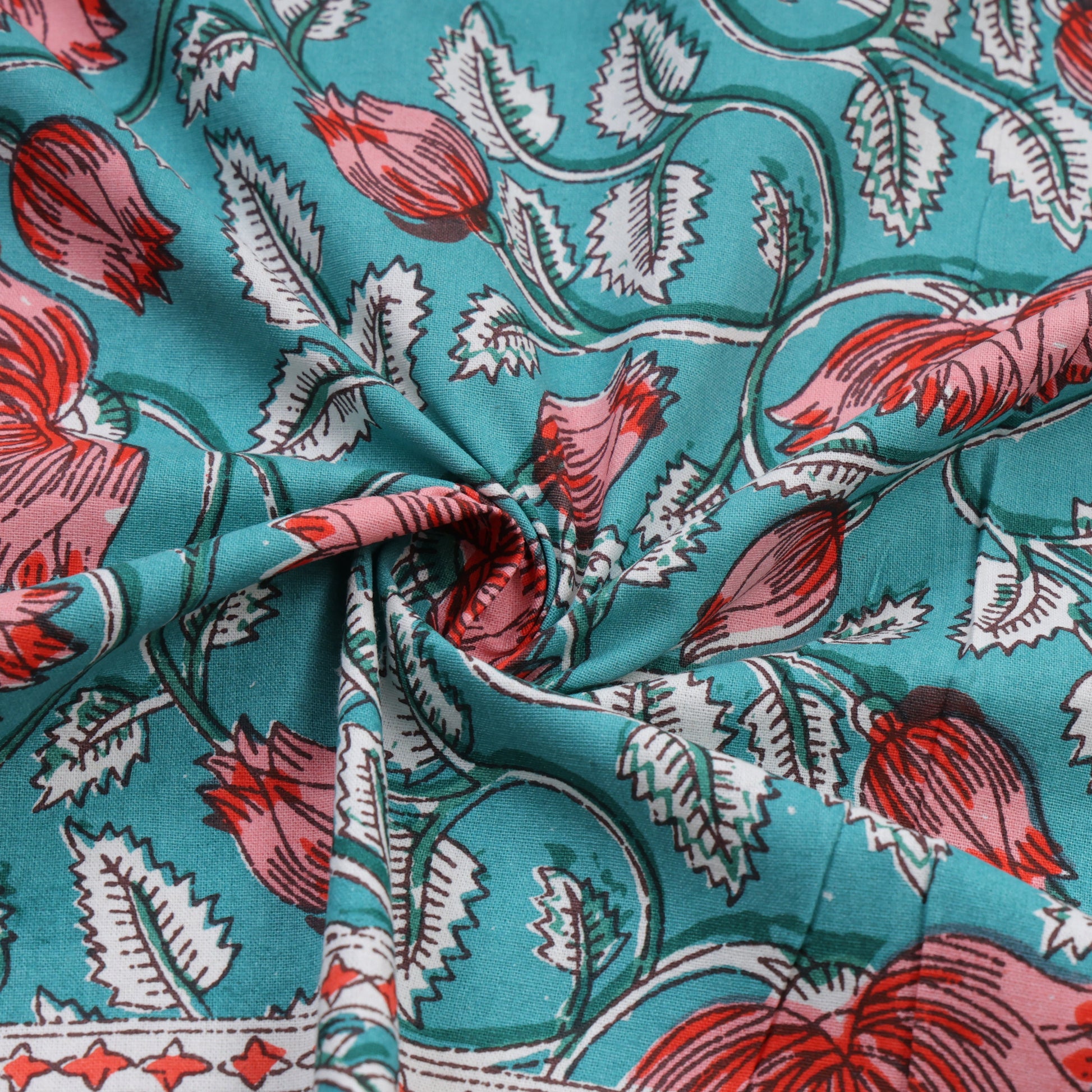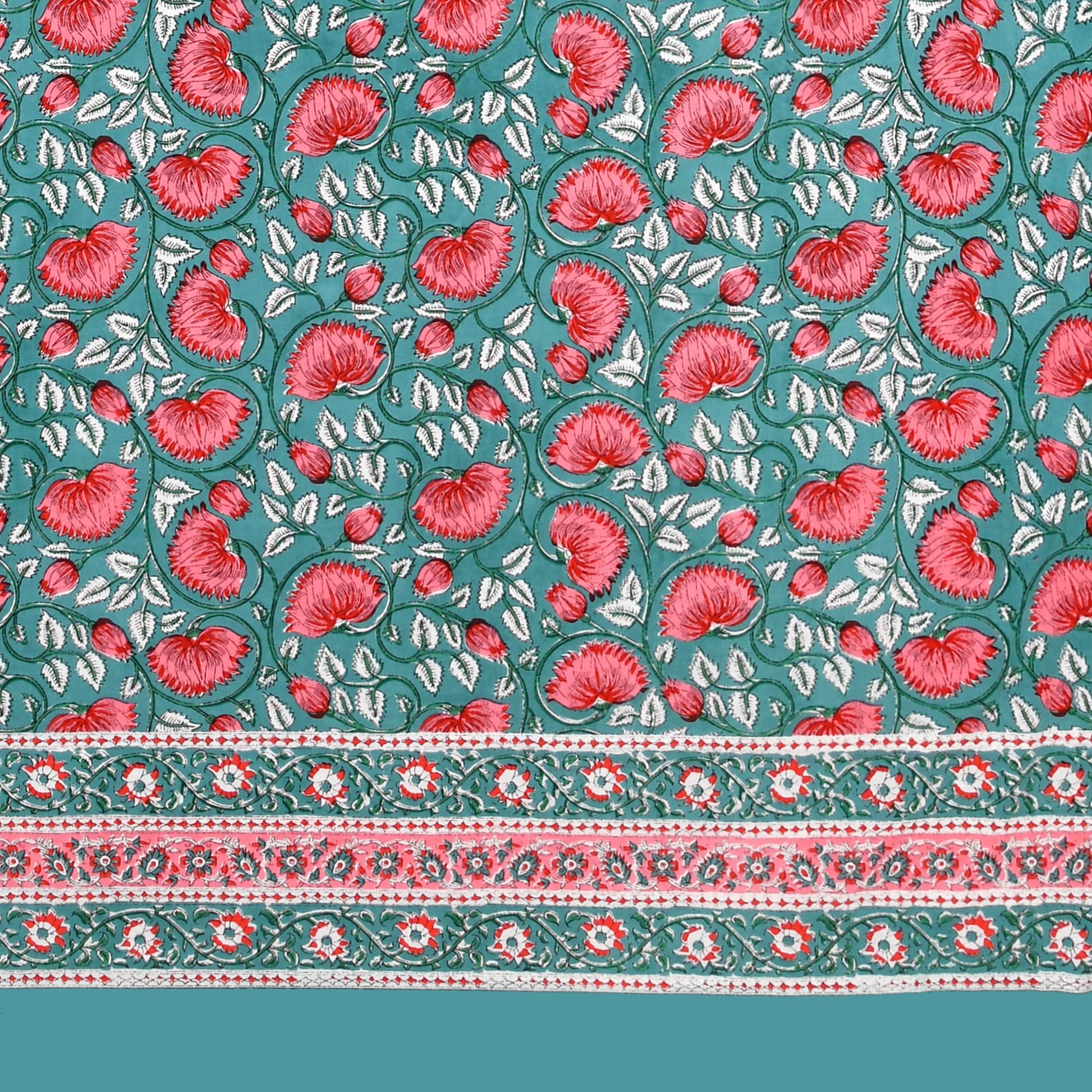 PREMIUM ORGANIC COTTON ANTIQUE TURQUOISE GREEN BEDSHEET WITH EMPIRE PLANT BLOCK PRINT – ETHNIC ELEGANCE
